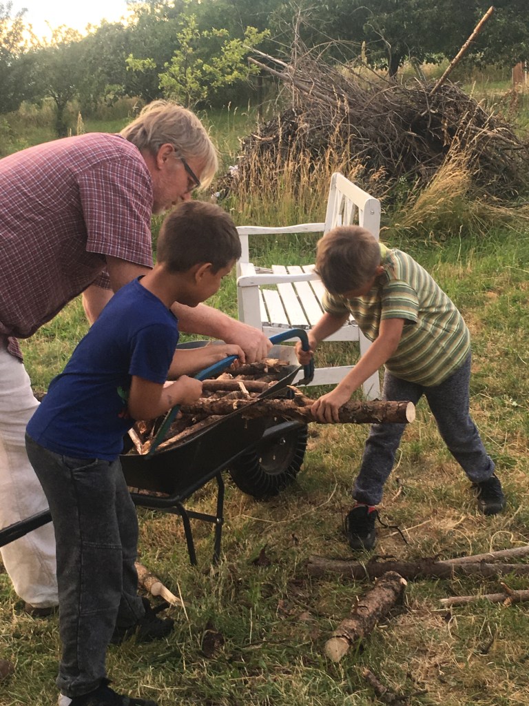 Many adults struggle with the idea of broaching medical topics with children. But what is awkward and frightening for adults may not be so for children. Kids play freely and happily when given permission, suitable tools, and an encouraging atmosphere. During the pretend surgery, Davud and Serge were animated, interactive, present, and curious. After Serge’s initial hesitance, the boys became deeply immersed in the activity, asking questions about the surgery and what would come afterwards. Their father and I took turns answering their questions, with Ivan’s medical background filling in gaps in my information. When I asked Serge what he would like to do with the doll’s amputated foot, he suggested wrapping it in tissue paper and placing it in a box for safekeeping. I provided the box and tissues, and Serge and Davud went about this task with quiet reverence.